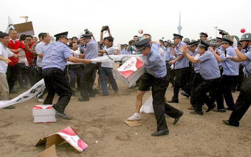 扣押2006年7月20日早8时,长春市公安局在文化广场举行了一次实战演练,公安、消防等多警种参加了此次的演练。此次实战演练主要针对集体骚乱、游行暴乱等行为举行。8时30分整个演练结束,最终民警制服“游行闹事”人员,驱散“骚乱队伍”,扣押“组织者”。