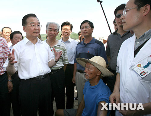 望着损毁的村庄,温家宝动情地说:我们遭受了百年不遇的特大灾害,群众受到很大的损失,我放心不下,很想早一点来看看。现在摆在我们面前的任务首先是把受灾群众生活安排好,让他们有饭吃、有衣穿、有住处、有干净的水喝、有病能医治。同时,要尽快恢复生产、重建家园。恢复遭受破坏的公用设施、基础设施,包括水、电、路、通讯和学校。要着手规划重建住房,选址要注意安全。