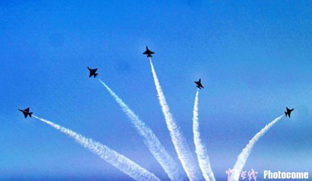 第五届中国国际航空航天博览会上的中国空军“八一”飞行表演队进行精彩的飞行表演。