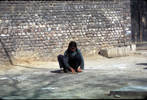 图片说明:一个小女孩独自一人在玩着游戏。