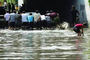 一推车人告诉记者,他们是搞工程防水的工人,前天大雨过后,桥下大量积水,他们其中的一位老乡便想到了推车赚钱这个方法。他们规定将水中熄灭的车推出每辆要收100元,并拒绝讨价还价。另一推车人说,他们从前天晚上开始推车,到目前为止已推了近百辆,收入很可观。