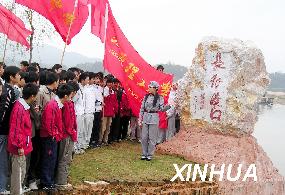资料图:这是在长征渡口,中央红军长征出发纪念馆的讲解员为学生们讲述红军夜渡于都河的历史(11月20日摄)。