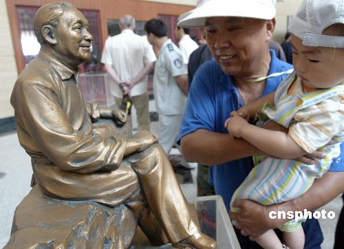6月6日,“中国郑州国际城市雕塑艺术年暨首届国际雕塑精品展 ”在河南郑州开幕,112位来自美国、英国、法国、意大利、俄罗斯等30多个国家以及中国的雕塑艺术家在展会上推出最新精品112件。图为已故中国雕塑艺术大师程允贤的作品《邓小平像》吸引参观者。