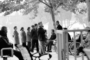 每天9:00开始,中心公园靠近承德道一侧的出口附近就会聚集很多50岁以上的人,他们有的是夫妻结伴而来,也有的是“单独行动”。大家在这个出口附近的椅子上坐定后,就开始互相询问是否想给儿女找对象,以及对方有什么条件等。还有一些家长甚至将自家儿女的现状写在一个硬纸板上,然后再把自己的要求写明。这些“心急如焚”的家长并不坐在椅子上,而是托着纸板在人群中来回溜达。