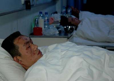 较轻的人员在103室。103室住着颌面受伤的张海峰和赵玉龙,还有胸部外伤的王炳东,1人因伤势较轻,在做了简单的治疗后,已经出院。