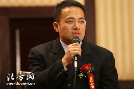 图为北方网总经理兼总编辑王奕在“网络媒体对传统媒体的挑战”主题论坛上发言。