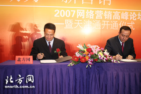 北方网消息:12月22日,“新动力、新营销——2007网络营销高峰论坛”暨“天津通”开通仪式在天津北方网隆重举行。