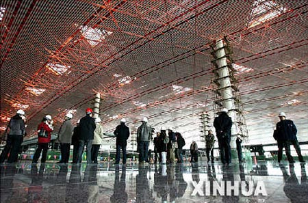 春节前夕,北京首都国际机场扩建工程航站区、飞行区外观竣工,扩建工程全面进入设备安装和室内精装修的最后冲刺阶段。新扩建的首都机场3号航站楼将于2007年6月底全部完工,以确保2008年北京奥运会时机场的正式运营。新机场建成后,首都机场一年将能满足7600万旅客的进出需要。