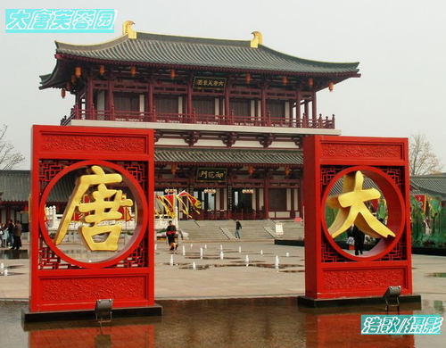 大唐芙蓉园位于西安市曲江新区的大唐芙蓉园占地1000亩,其中水面300亩,总投资13亿元,是西北地区最大的文化主题公园,建于原唐代芙蓉园遗址以北,是中国第一个全方位展示盛唐风貌的大型皇家园林式文化主题公园。包括紫云楼、仕女馆、御宴宫、芳林苑、凤鸣九天剧院、杏园、陆羽茶社、唐市、曲江流饮等众多景点。大唐芙蓉园创下多项纪录,有全球最大的水景表演,是首个“五感”(即视觉、听觉、嗅觉、触觉、味觉)主题公园;拥有全球最大户外香化工程;是全国最大的仿唐皇家建筑群,集中国园林及建筑艺术之大成。