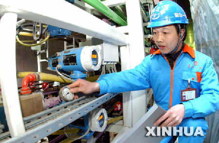 3月27日,沈阳地铁一号线施工人员正在检查盾构机运转情况。