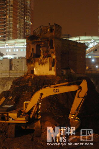 挖掘机正在拆迁被网友称为“最牛钉子户”的小楼。