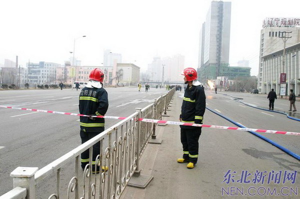 4月6日,抢险人员在现场。当日早8点左右,沈阳市和平区南湖桥东南角发生一起严重的天然气泄漏事故,并引发大火。