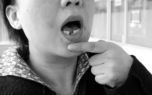 昨日上午,记者在黄河医院见到了张女士。诊断证明显示,因受到棍棒击打,张女士两颗门牙脱落,双侧面颊及下颌软组织肿胀,双下肢皮下淤血,活动受限。