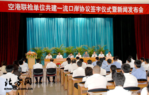 北方网消息(记者霍艳华 实习记者袁晓峰 通讯员朱虹):6月28日上午,天津出入境边检总站张贵庄检查站、天津机场海关、天津出入境检验检疫局机场办事处三家空港联检单位共同签署了共建一流口岸协议,该协议实施后将使天津机场进口通关速度提高10%--15%。