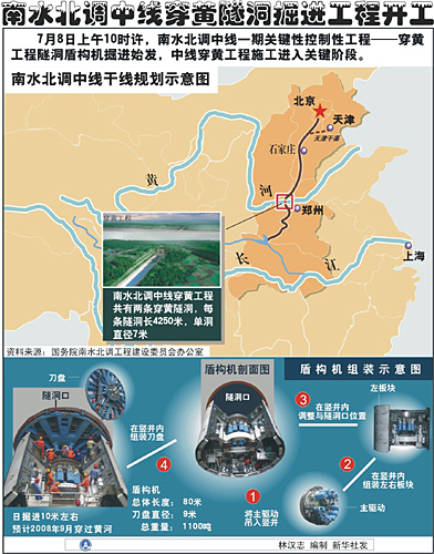 图表:南水北调中线穿黄隧洞掘进工程开工。新华社发