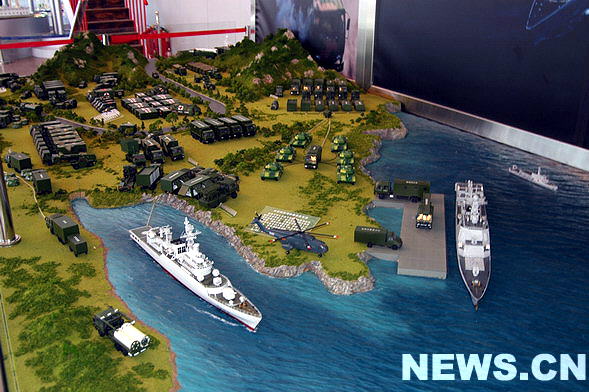 为纪念中国人民解放军80周年,由中共中央宣传部和解放军总参谋部、总政治部、总后勤部、总装备部联合举办的《我们的队伍向太阳——新中国成立以来国防和军队建设成就展》,7月16日在中国人民革命军事博物馆隆重开幕。图为展馆内展出的我军现代化野战后勤保障系统沙盘模型。新华网发