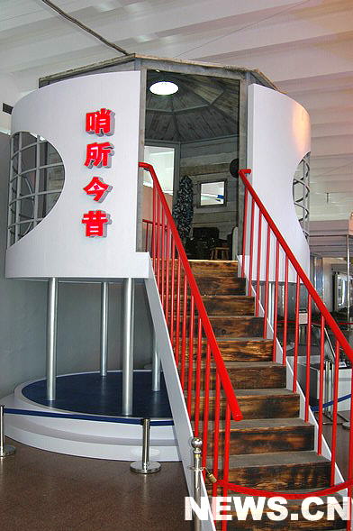 为纪念中国人民解放军80周年,由中共中央宣传部和解放军总参谋部、总政治部、总后勤部、总装备部联合举办的《我们的队伍向太阳——新中国成立以来国防和军队建设成就展》,7月16日在中国人民革命军事博物馆隆重开幕。图为展馆内展出的我军南沙守备部队曾经居住过的“高脚屋”的复制品。新华网发