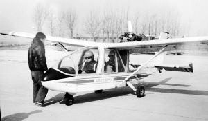 崔大明和张力戴上飞行帽,穿着背心裤衩就登上了这架只有两个座位的自制小型飞机。