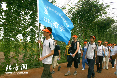 29日7时30分,首批营员头戴印有“爱心•牵手”字样的营帽在天津青年宫举行了开营仪式。团市委副书记史庆伟参加开营仪式,并为活动授营旗。随后,营员们来到西青区天津鑫三农田庄进行拓展活动,营员们自行分组,设计队名、标志、口号,大家在友好的氛围下开展了团队竞赛。