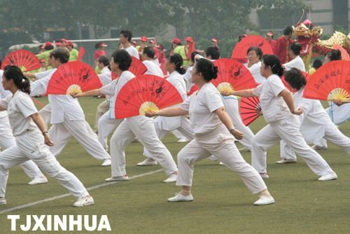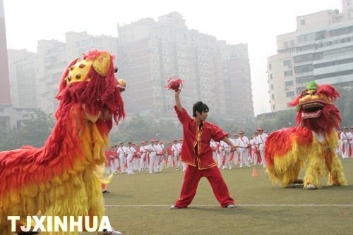 为给“楼门文化展览馆”开馆烘托气氛,昨日上午8:30,一个“百人舞龙”团首先出场。随后,来自南市街的500余名社区居民表演了舞狮、腰鼓、太极拳、太极剑、健身操、健身舞、功夫扇等节目,精彩的表演使得现场高潮迭起。