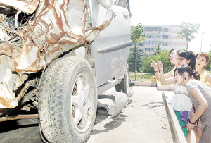 满目疮痍的“另类”汽车,让参观者触目惊心。