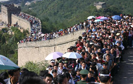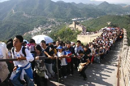 “十一”长假开始几天以来,北京八达岭长城等部分主要景区旅游升温,均达到或超过最佳接待容量。