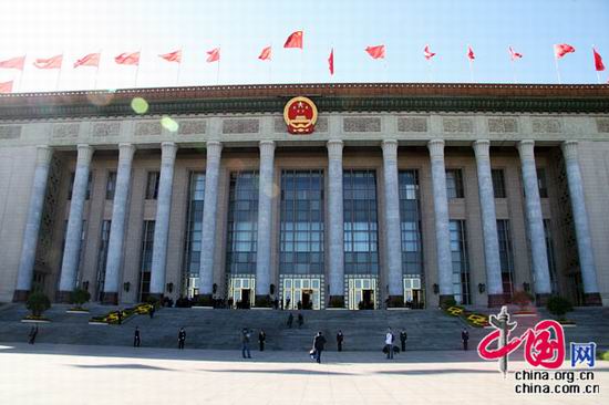 庄严的人民大会堂红旗飘扬