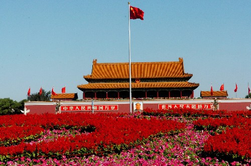 喜迎“十七大” 天安门前繁花似锦美如画(组图)