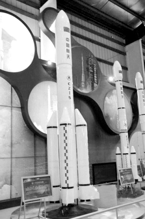 落户天津开发区的新一代运载火箭产业化基地项目,对于加快滨海新区开发开放、促进高端、高质、高新产业发展、提升天津的产业结构和发展水平具有重大意义。图为“长征五号”模型