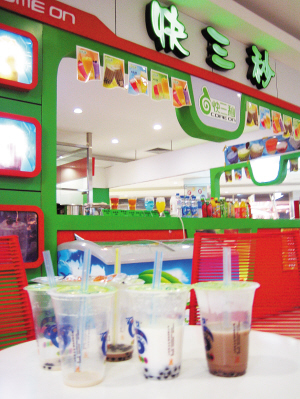 在人流大的街道,塘沽区一连开了数家这样的水吧店,主营珍珠奶茶。近日,记者对这些珍珠奶茶店进行了暗访,发现这些“珍珠奶茶”的卫生和质量状况真是令人不敢恭维。