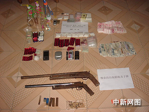 广东韶关乐昌市警方今天称,警方在日前开展的代号为“搜狐”的缉毒行动中,成功抓获了贩毒犯罪嫌疑人6名,当场缴获自制猎枪2支,子弹4发,摇头丸、冰毒等一大批毒品,以及毒资人民币5000多元。至此,一个在乐昌市区娱乐场所贩卖毒品的特大涉枪贩毒团伙被警方成功摧毁。