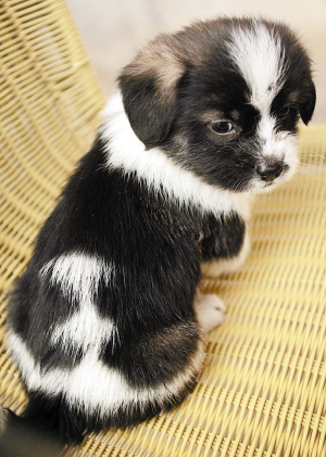 这条“称王”的小狗刚出生一个多月,是一条杂交的小叭狗。它背部的毛基本上都是黑色,只是在靠近屁股的位置有三横一竖四道白毛,恰巧形成了一个“王”字。而且,最下面那一横明显比上边两横长上很多,一直延到了小狗的后腿上。