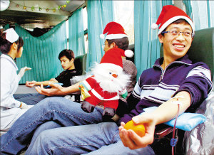 献血"风靡"滨江道 平安夜天津市民玩出花样(图)