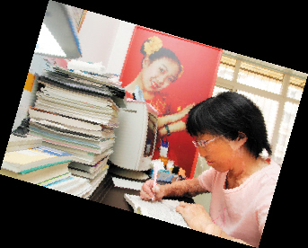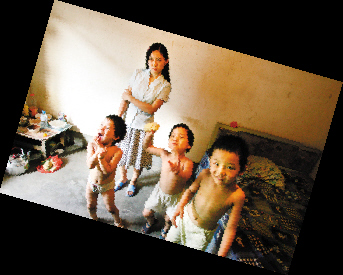 2005年9月1日,10年前被天津少年儿童奉为偶像的少年作家、如今的单身母亲庞秀玉在家里与她三个年幼的孩子。庞秀玉说,她还是想再拿起那支放下已久的笔。