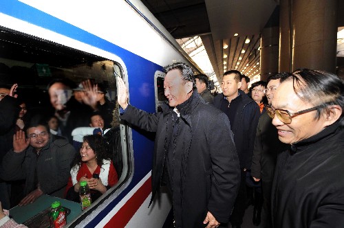 16时40分,吴邦国一行来到北京西站。他在应急指挥中心,通过大屏幕仔细了解了旅客购票、进出站、候车和乘车情况,对北京西站以及全路及时启动应急预案、快速采取应急措施表示肯定。在售票车间,他向售票员了解旅客购票情况,关心排队的旅客能不能买上票。看到窗外购票大厅里虽然等候买票旅客很多,却井然有序,吴邦国感到十分欣慰。在站台上,他向已经登上T231次列车去往西安的旅客挥手致意,祝他们一路平安。在候车室,吴邦国与旅客亲切攀谈,询问车票好不好买、能不能喝上开水、什么时候到家。当得知旅客有地方候车、有开水喝、有食品供应,能及时知道所乘列车什么时候发车,吴邦国非常高兴。他说,春节是中华民族的传统节日,大家回家过年的心情十分迫切,铁路系统要坚持以人为本,以旅客为中心,全力以赴做好服务,尽力改善候车和乘车条件,确保旅客平安顺利地与家人团聚。
