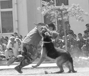 昨日,记者前往市武警五支队,实地观摩了“警犬搜索解救人质并制服犯罪分子”的表演。奥运会临近,市武警五支队特勤中队在警犬训练中重点突出了搜索和追捕训练,为奥运安保任务做好准备。