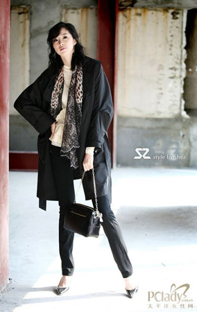 宽大的风衣显得身材更为娇小,配上简单的衬衫与长裤就非常优雅。当然丝巾也是不能少的修饰品啦。