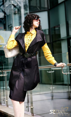 反光的丝绸物料,尽显你高贵的魅力。短袖的设计配上耀眼的黄色衬衫,风情万种。