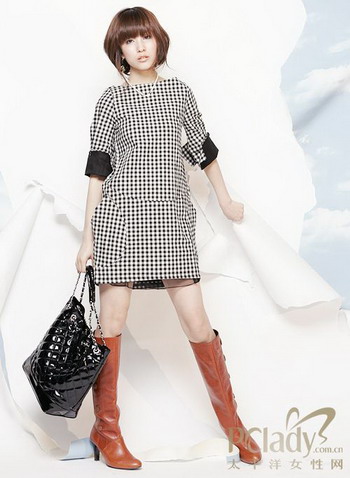 高贵的淑女气质永远是最经典的打扮,典雅的格子图案长裙就能轻易做到。高统的马靴设计可以遮盖不完美的小腿。不要忘记同样气质高雅的配饰哦。珍珠项链就是最能体现高雅气质的单品。