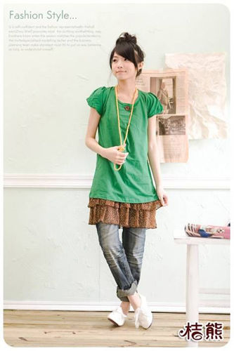 休闲中点缀上公主袖、小碎花…等公主元素的超强修饰穿搭!长版衣+双层裙摆的造型,最后搭配随性感的牛仔裤~女孩最爱的混搭造型大成功!