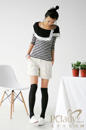 短裤配上高统袜,是备受小腿粗壮困扰的救星。能够立刻小腿缩小一个尺寸,还能看起来更加俏皮可爱。