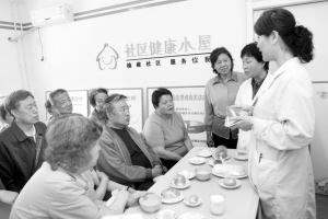 “西红柿用油炒了吃,更利于营养的吸收。”昨日(20日),当天津市和平区南营门社区医生张金榜拿着实物模型讲解健康饮食知识时,引起了在场社区居民的极大兴趣,人们不约而同地围上来,听她讲课。“教室”不大,只有十几平方米,却很温馨,墙壁上写着几个美术字“社区健康小屋”,这在本市还是首次出现。