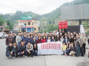 经过一路的颠簸,我们在位于青川县金子山脚下的青川县抗震救灾联络点停下。我们大家纷纷下车给家人、朋友、单位打电话、发短信报平安,终于可以下车舒展一下疲惫的身体和呼吸一些新鲜的山村空气了。