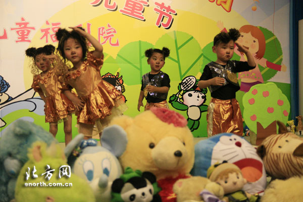 北方网消息(记者吴宏):5月31日下午,天津市儿童福利院求知会堂里召开了“我们是福娃,共享祖国情”六·一联欢会。