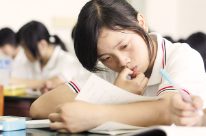 高二七班的张青婷因为前天去配眼镜,错过了测验,于是抓紧上课前的时间补上。她说,经过大地震,现在觉得能在教室里安静地做题就是一种幸福。所以有学习的时间和机会,我会倍加珍惜。