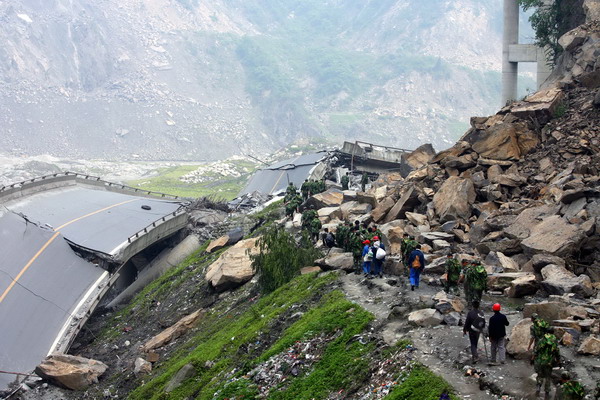 5月16日拍摄的通往汶川的垮塌大桥。