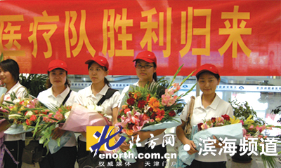 北方网(记者:董锐、李丽)消息:昨天下午2点30分,由泰达医院、泰达国际心血管病医院联合派出的赴川医疗救护小分队队在经过了长达24天的前线战斗之后,载誉归来。泰达医院党委书记书记张同国、副院长刘兰生和泰达国际心血管病医院院长刘晓程等领导亲自前往机场迎接。
