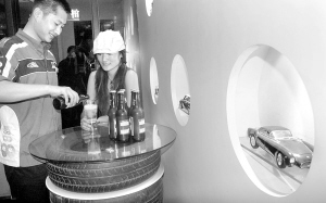 日前,本市首家以汽车为主题的酒吧正式开业,顾客在这里不仅可以休闲、娱乐,还可以领略汽车文化的魅力。用旧轮胎搭成的桌子,酷似车轱辘的吧台,汽车赛事全天候直播……这些只是汽车酒吧诸多特色中的几项。