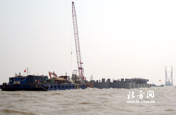 该工程安装的箱筒单组净重200吨,路程长达30海里,一公司采用气浮托运新工艺对大型钢结构进行如此长距离的实施浮运,在国内尚属罕见。施工人员在长达30海里的运送过程和安装过程中克服了外海作业风浪大、水流急等诸多危险和不利因素,科学安排,经过施工人员的努力,最终以3-4厘米的偏差(低于设计要求)顺利完成10组箱筒的安装任务,确保了工程质量。