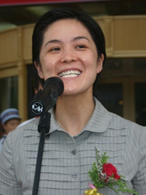 嫣然一笑应对“中国最年轻的美女副省长”她身着一件格子大衣,围着一条红色围巾,显得典雅而时尚,看上去比实际年龄还年轻许多。当记者把网民冠以的“中国最年轻的美女副省长”的称谓转述她时,她嫣然一笑,言谈之间十分低调。不过,当谈起她在本次两会上的建议时,立即展露出灿烂的笑容。